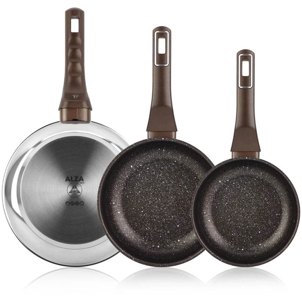 Mit der Edelstahlpfanne PETREA von Alza können Sie ein überlegenes kulinarisches Erlebnis genießen, das Qualität, Widerstandsfähigkeit und innovatives Design in Ihrer Küche vereint.
