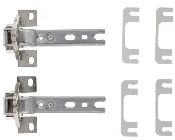 Set mit 3 Kühlschranktürscharnieren und 6 Unterlegscheiben zur Montage (einige Sets können 2 Scharniere enthalten). Scharnierdurchmesser 30 mm, kompatibel mit Bohrungen von 30 mm, 35 mm und 42 mm. Maße der Unterlegscheiben: 3 x 0,8 mm und 3 x 1,5 mm. Scharnierposition: links oder rechts.