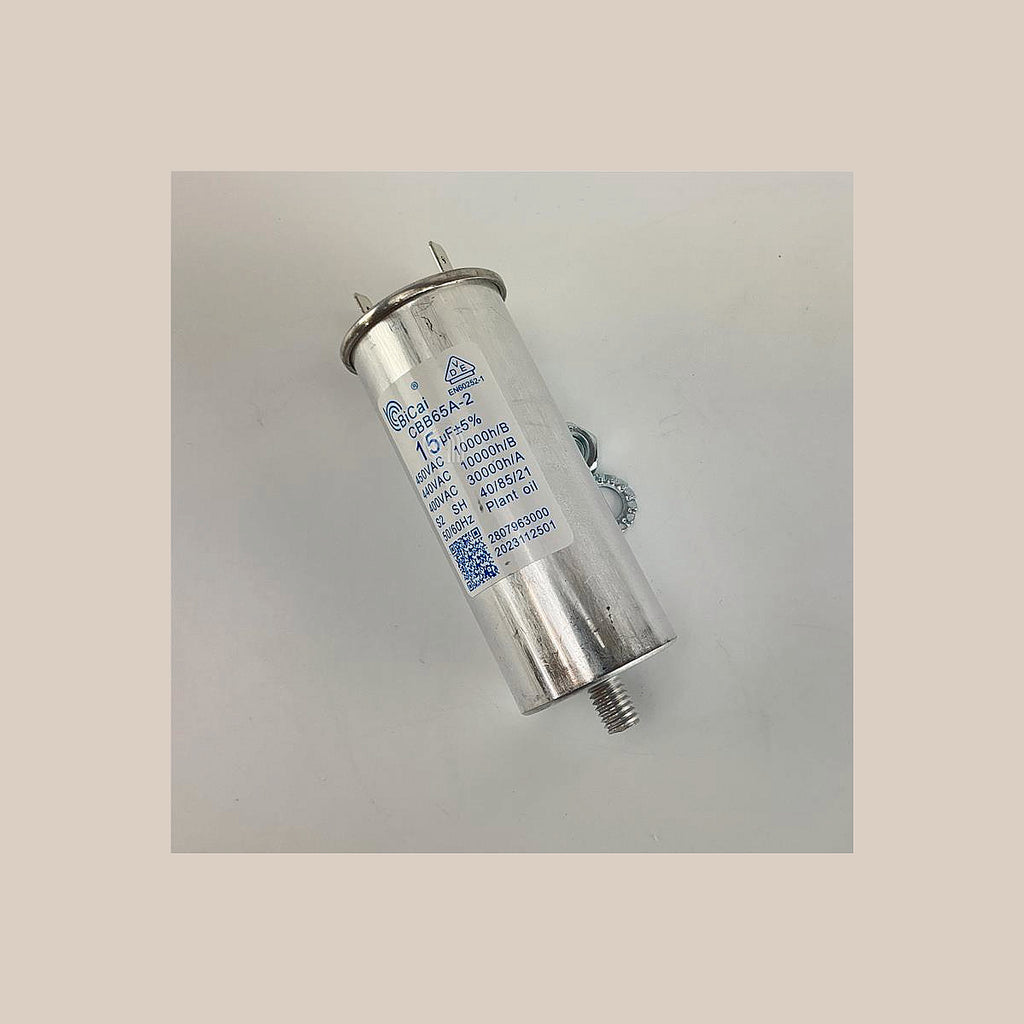 • Elektrische Kapazität: 15 µF (Mikrofarad).