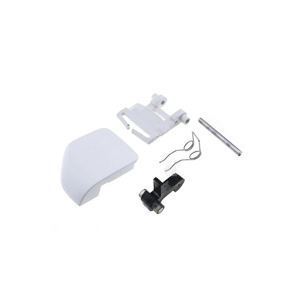 Dieses **Set aus Griff und Türverschluss** ist ein hochwertiger **anpassbarer** Ersatz, der mit einer breiten Palette von Waschmaschinen führender Marken wie **ARDO, WHIRLPOOL, SMEG, ATLANTIC, IGNIS, ROMMER, NEW POL, SAIVOD und GORENJE** kompatibel ist. Entwickelt, um die Originalteile zu ersetzen, umfasst dieses Set den Griff, die Feder, den Stift, den Nocken und den Riegel, was eine vollständige und dauerhafte Reparatur gewährleistet. Es ist die ideale Lösung, wenn der Originalgriff gebrochen ist oder der Verschlussmechanismus versagt hat, sodass Ihre Waschmaschine wieder ordnungsgemäß und sicher funktioniert. Das Teil ist weiß und aus widerstandsfähigem Kunststoff gefertigt, wobei die Spezifikationen der Original-Herstellercodes nachgebildet werden.