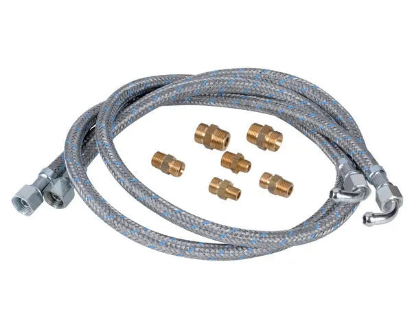 Die Verkaufseinheit umfasst zwei flexible Schläuche mit einer Länge von 1000 mm, ideal für eine vielseitige Installation. Zudem werden kegelige und flache Anschlüsse in M3/8'' und M1/4'' mitgeliefert, um sich an verschiedene Konfigurationen anzupassen.