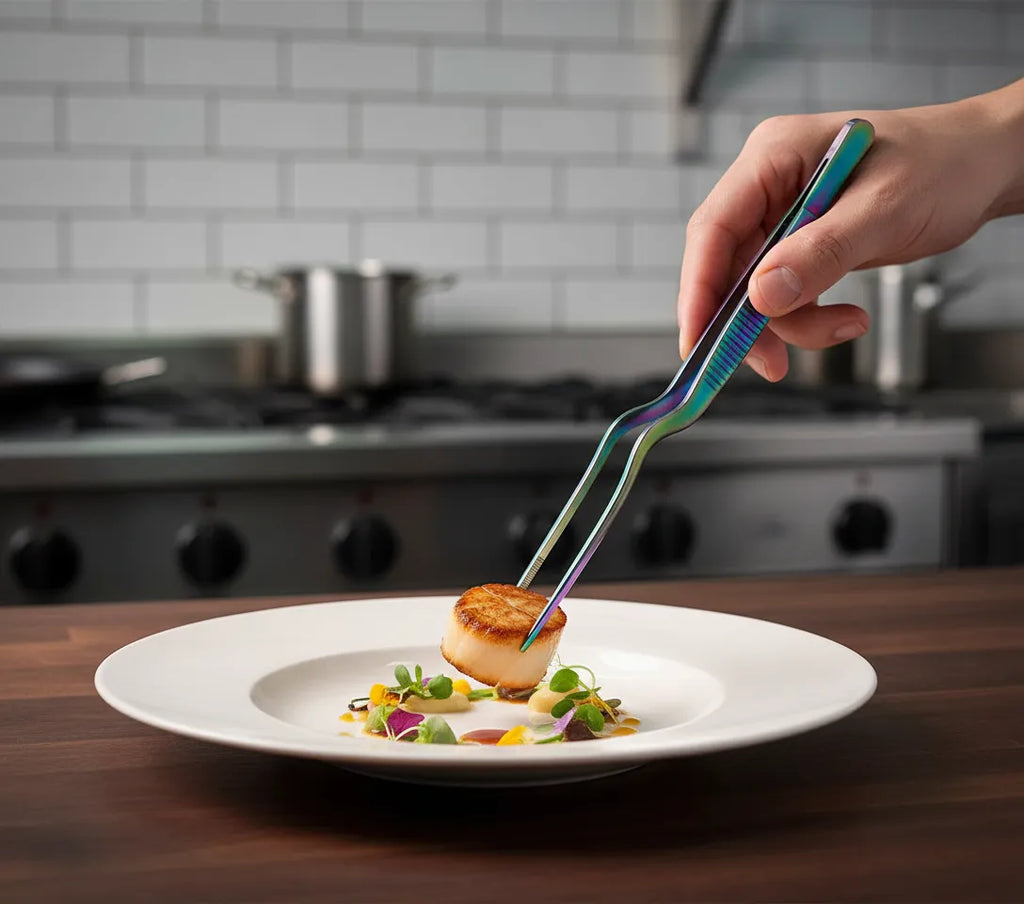 Die Präzisionspinzette TITAN RAINBOW von LACOR vereint professionelle Funktionalität mit einer spektakulären Regenbogentitan-Oberfläche. Hergestellt aus hochwertigem Edelstahl 18/10, ist sie das perfekte Werkzeug sowohl für professionelle Köche als auch für Hobbyköche, die Stil und Leistung suchen.