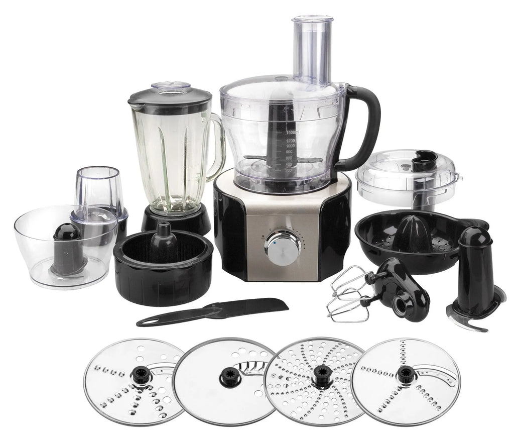 Discos de corte: Para cortar, picar o rallar verduras como zanahorias, calabacín, patatas, etc. Exprimidor: Para preparar zumos y aliños con diferentes cítricos