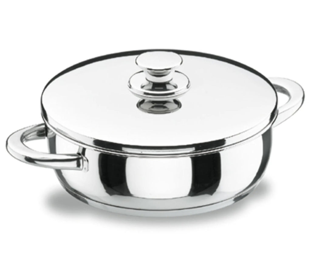Toda la pieza (cuerpo, asas y mangos) fabricada en acero inoxidable 18/10.
