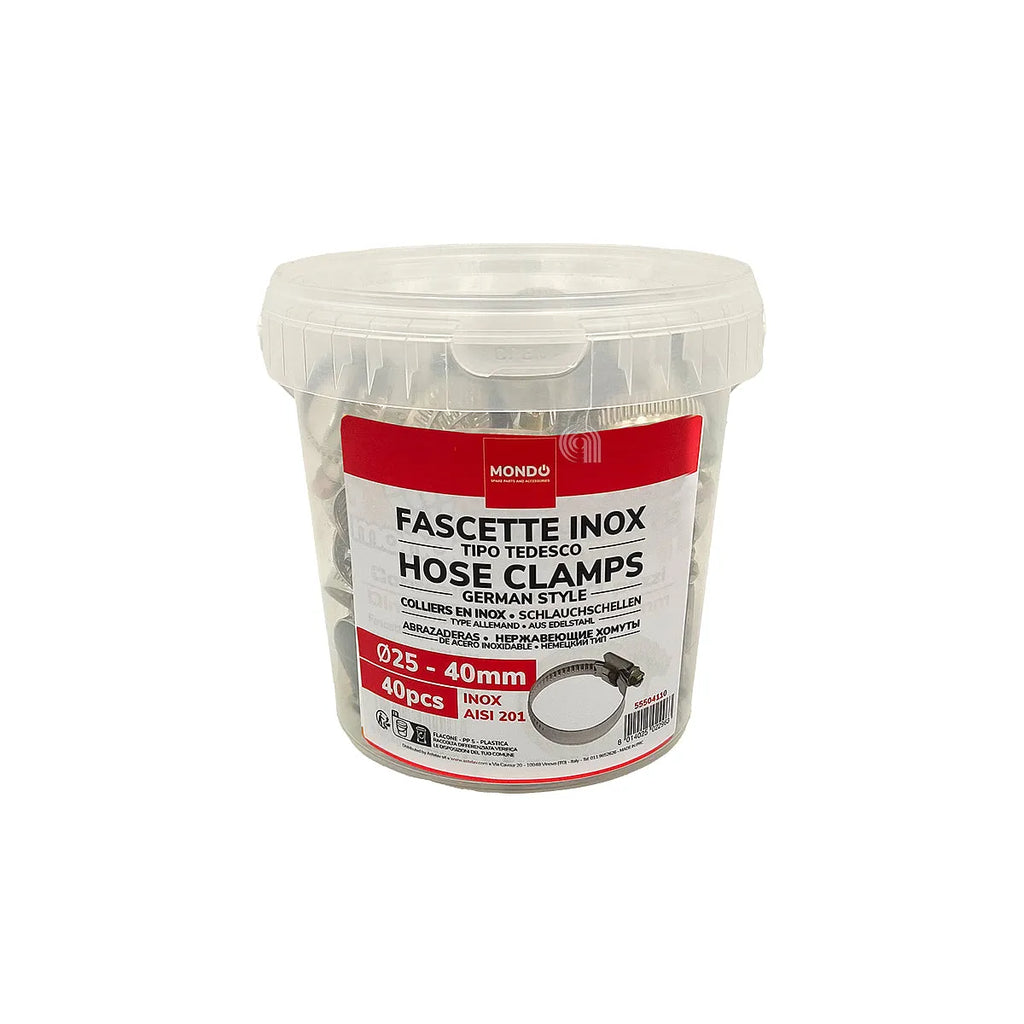 Packung mit 40 Edelstahl-Schlauchschellen von 25 bis 40 mm MONDO