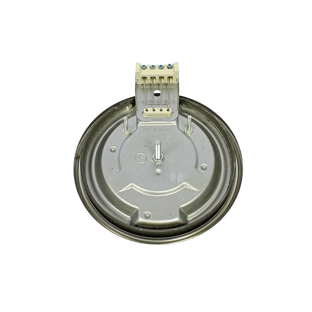 Hochwertige, anpassbare Elektrokochplatte, kompatibel mit einer breiten Palette von Glaskeramik-Kochfeldern führender Marken wie EGO und BRANDT. Dieser 1000W und 230V Heizkörper bietet eine zuverlässige und langlebige Leistung für die Reparatur Ihrer Küche. Hergestellt mit einer Gusseisenscheibe und einem Edelstahlrand, gewährleistet er eine gleichmäßige Wärmeverteilung. Es ist die perfekte Lösung, um eine beschädigte Kochplatte zu ersetzen und sicherzustellen, dass Ihr Gerät wieder wie am ersten Tag funktioniert.