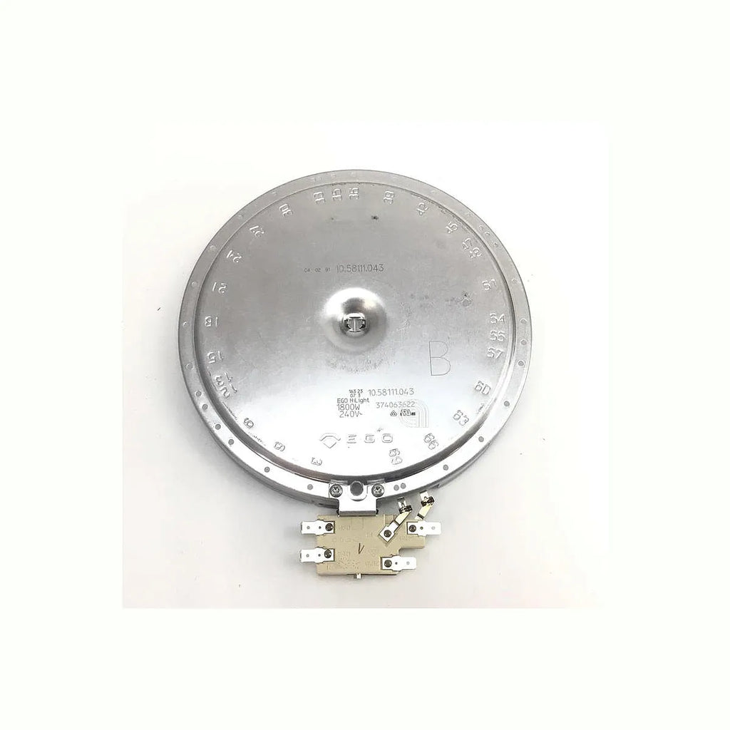 Ersatz für strahlende Glaskeramik-Kochplatten (Hilight) für Herde und Arbeitsplatten. Diese Originalkomponente der Marke EGO gewährleistet eine optimale Wärmeübertragung und Verteilung für ein effizientes Kochen. Mit einer Leistung von 1800W und einer Spannung von 230/240V ist dieser Heizwiderstand die perfekte Lösung, um Ihre Glaskeramik-Kochplatte zu reparieren und ihre maximale Leistung wiederherzustellen. Es handelt sich um ein OEM-Produkt, das höchste Qualität und Kompatibilität garantiert.