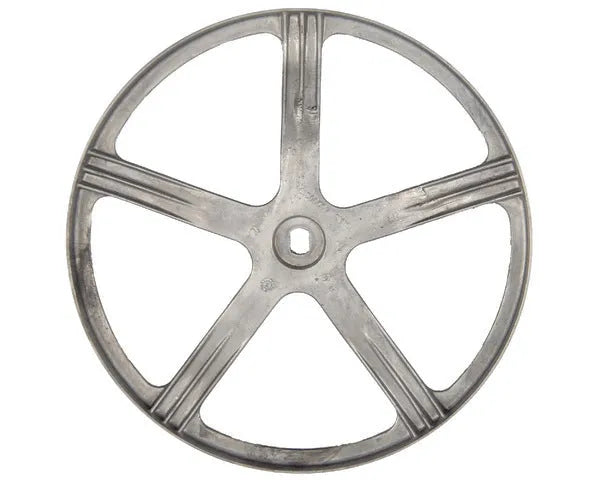 Trommelrolle für Waschmaschine. Es handelt sich um ein originales Ersatzteil mit mechanischem Antrieb, das mit dem Riemen des Geräts verbunden ist.