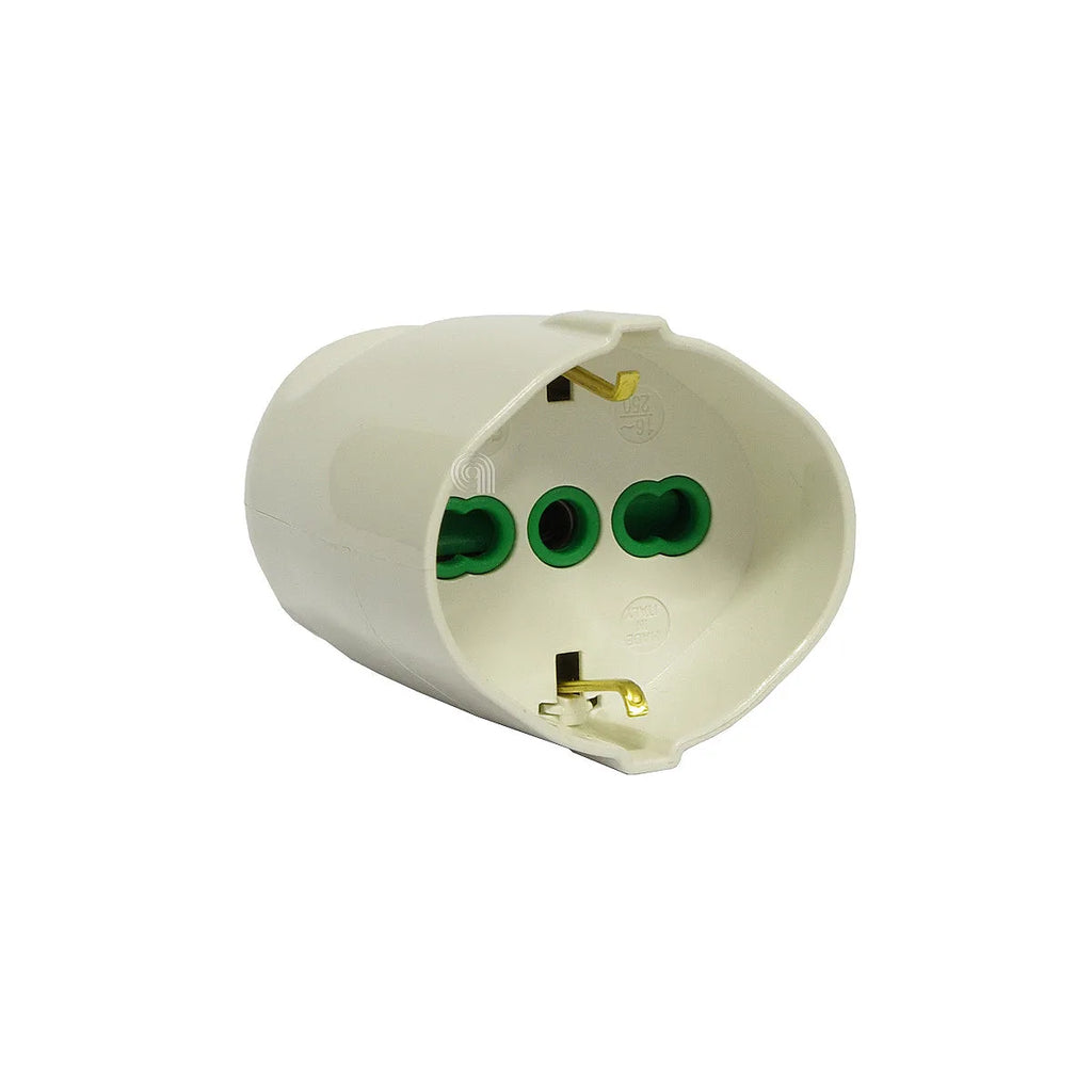 Die GBC Steckdose Schuko 2P+T 16A ist ein anpassungsfähiges Bauteil von hoher Qualität, ideal für den sicheren Anschluss kleiner Haushaltsgeräte. Sie ist für den Betrieb mit 220V ausgelegt und trägt eine maximale Last von 1500W. Diese weiße Steckdose verfügt über vergoldete Messingkontakte und Schraubanschlüsse, die eine robuste und dauerhafte Verbindung gewährleisten. Ihre Bauweise entspricht den Normen CEI 23-50 und DIN VDE 0620-1 und bietet Sicherheit und Zuverlässigkeit. Perfekt zum Austausch beschädigter Steckdosen oder für Neuinstallationen, um eine optimale Leistung in Ihrem Zuhause oder Ihrer Werkstatt sicherzustellen.