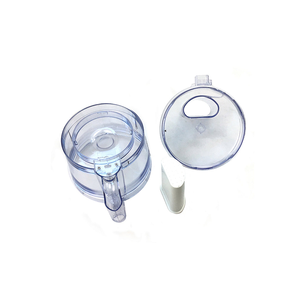 Komplette Schüssel mit Griff, Deckel und original transparentem Kunststoffstopfer für De Longhi Küchenmaschinen. Dieses Ersatzteil ist entscheidend für die ordnungsgemäße Funktion der Küchenmaschine und ermöglicht die sichere und bequeme Zubereitung und Verarbeitung von Lebensmitteln.