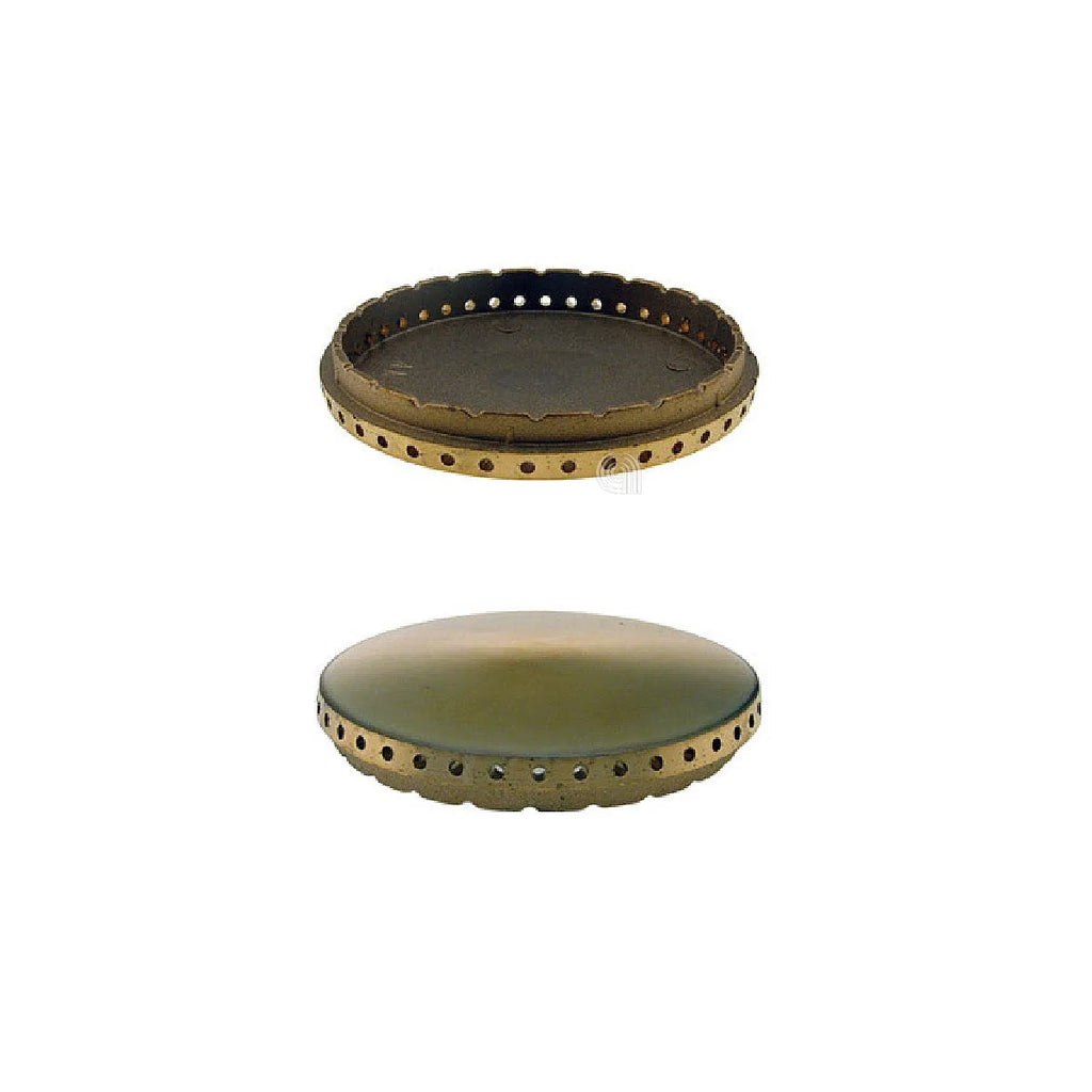 Flammverteiler von Ariston, gefertigt aus durchlochten Messing mit polierter Oberfläche, entwickelt für Kochfelder. Dieser austauschbare Ersatzteil, Referenz L0211, ist ideal zum Ersetzen des Halbschnellbrenners Ihres Herdes. Er gewährleistet eine gleichmäßige Flammenverteilung für ein effizientes Kochen. Es ist eine wesentliche Komponente für die ordnungsgemäße Funktion Ihres Gasherds und garantiert Langlebigkeit sowie optimale Leistung. Kompatibel mit verschiedenen Modellen von Ariston-Kochfeldern.