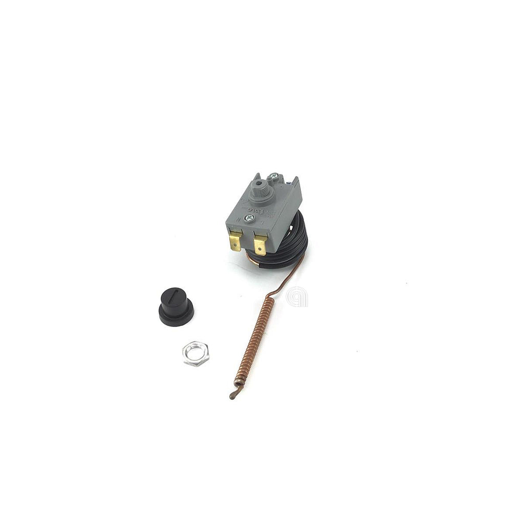 Recambio de termostato de seguridad bipolar (DPST) adaptable para termos eléctricos de las marcas ARISTON y THERMEX. Este componente es esencial para el correcto funcionamiento y la seguridad de su electrodoméstico, cortando el suministro eléctrico cuando se alcanza la temperatura máxima de 90°C. El termostato cuenta con un capilar de 750 mm de longitud para una instalación precisa.