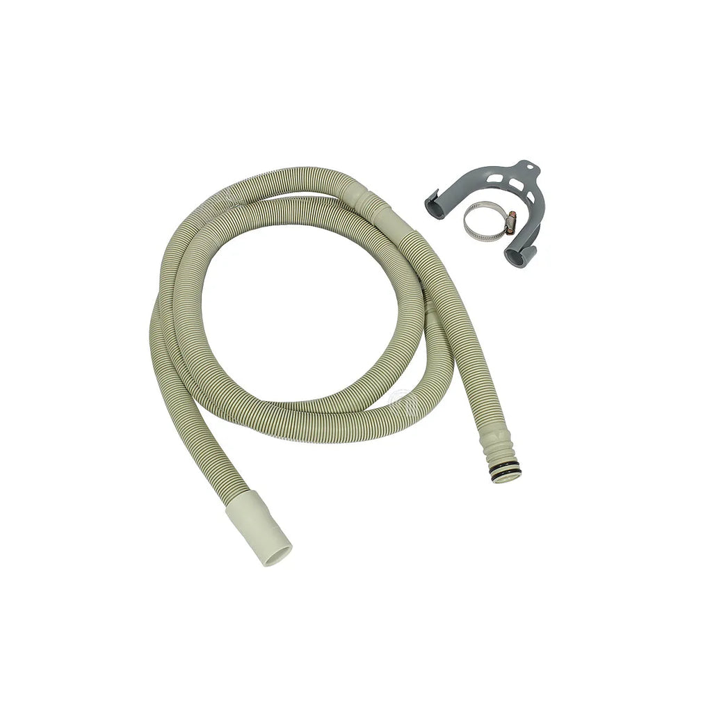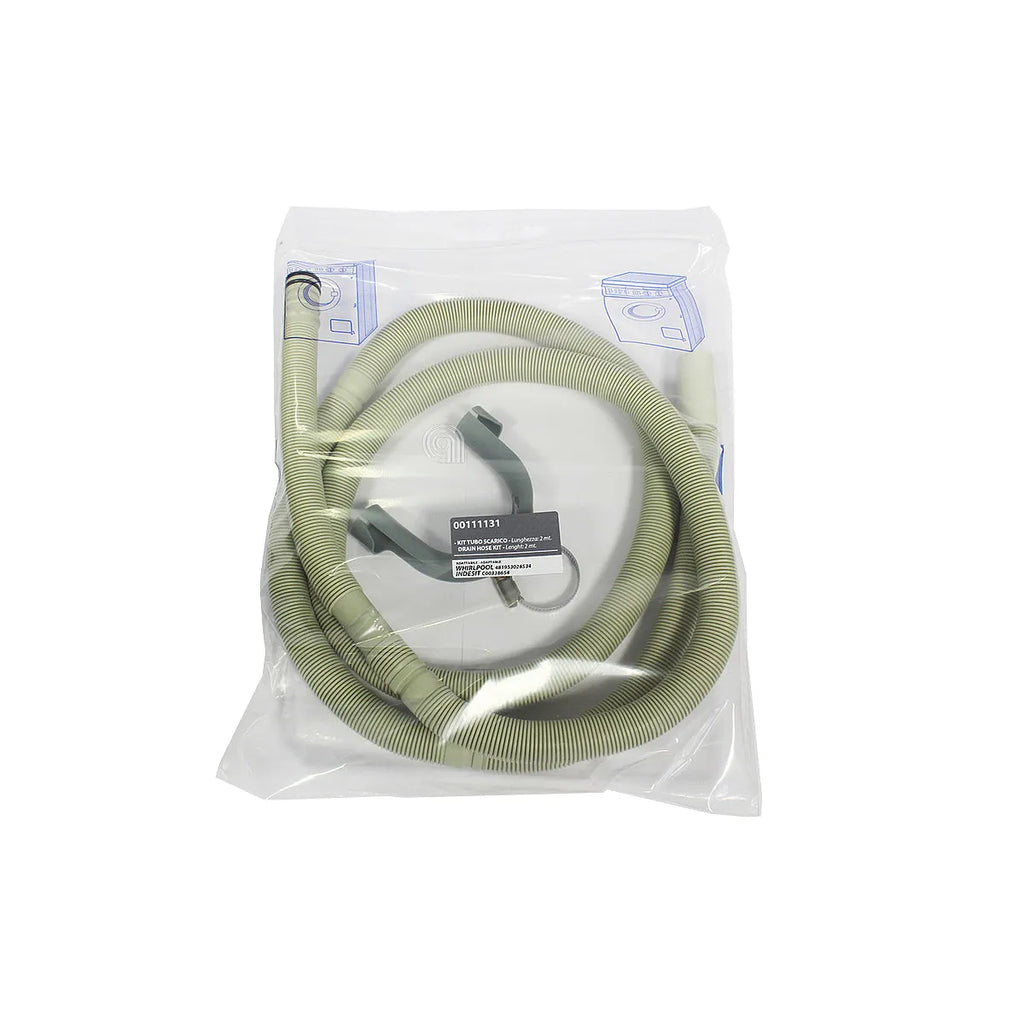 Anpassbarer Ablaufschlauch von **WHIRLPOOL** und **INDESIT**, kompatibel mit einer breiten Palette von Waschmaschinen und Geschirrspülern verschiedener Marken. Dieses hochwertige Ersatzteil ist eine kostengünstige und funktionale Alternative zu den Originalteilen, entwickelt für die effiziente Ableitung von Wasser. Seine Ausführung aus Kunststoff und Gummi gewährleistet Langlebigkeit und eine sichere Passform an der Ablaufpumpe. Es ist ideal zum Austausch beschädigter oder undichter Schläuche und sichert die einwandfreie Funktion Ihres Haushaltsgeräts. Die ungefähre Länge von 2 Metern ermöglicht eine flexible Installation.